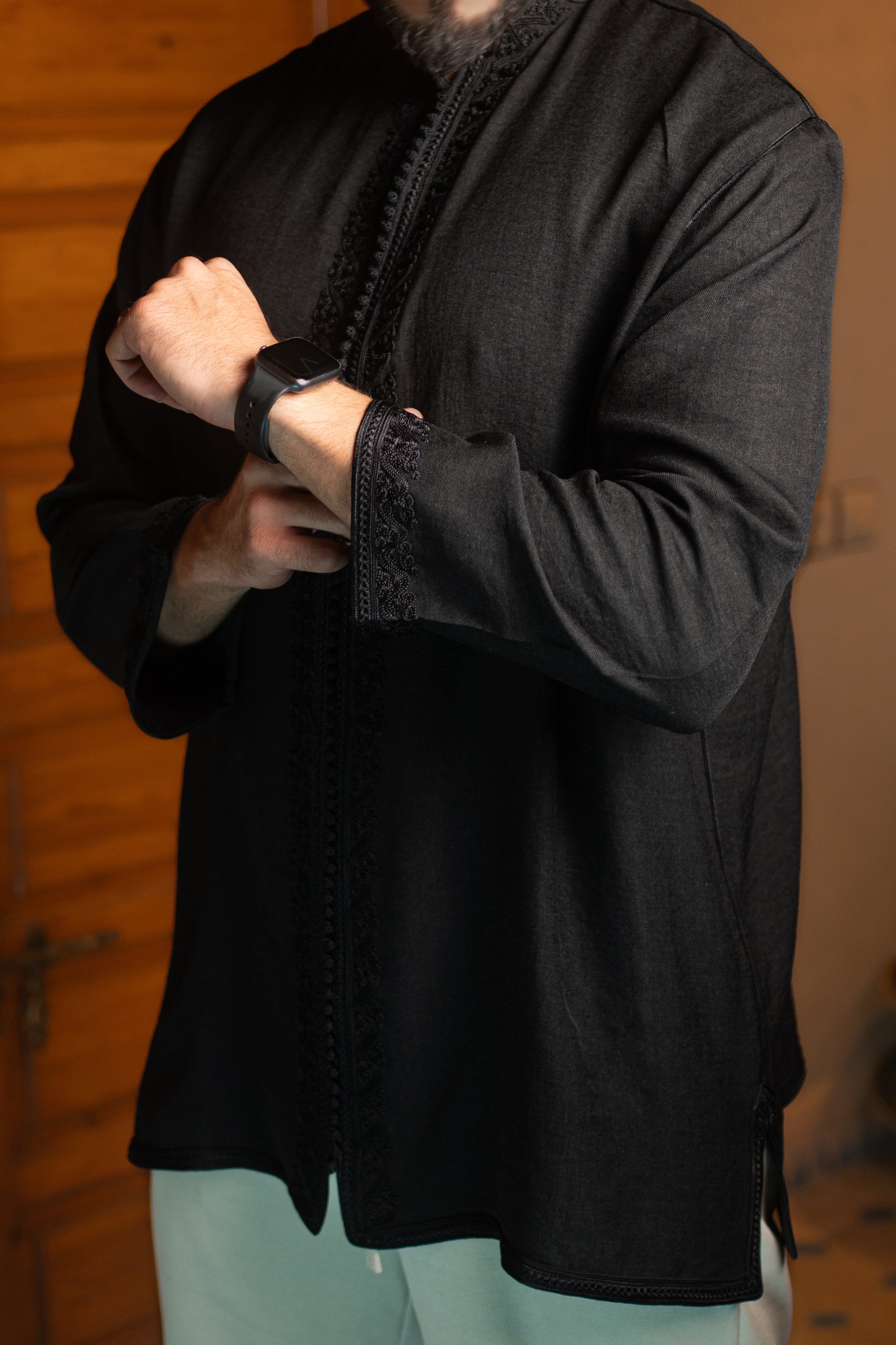 Intricate sfifa and delicate beadwork from collar to cuff, including along the sleeves. The Tonika Original is a tribute to Moroccan artistry stitched by hand.